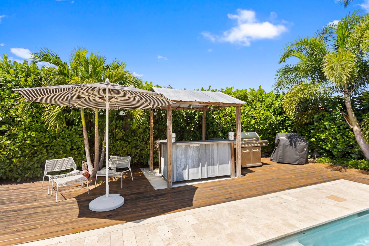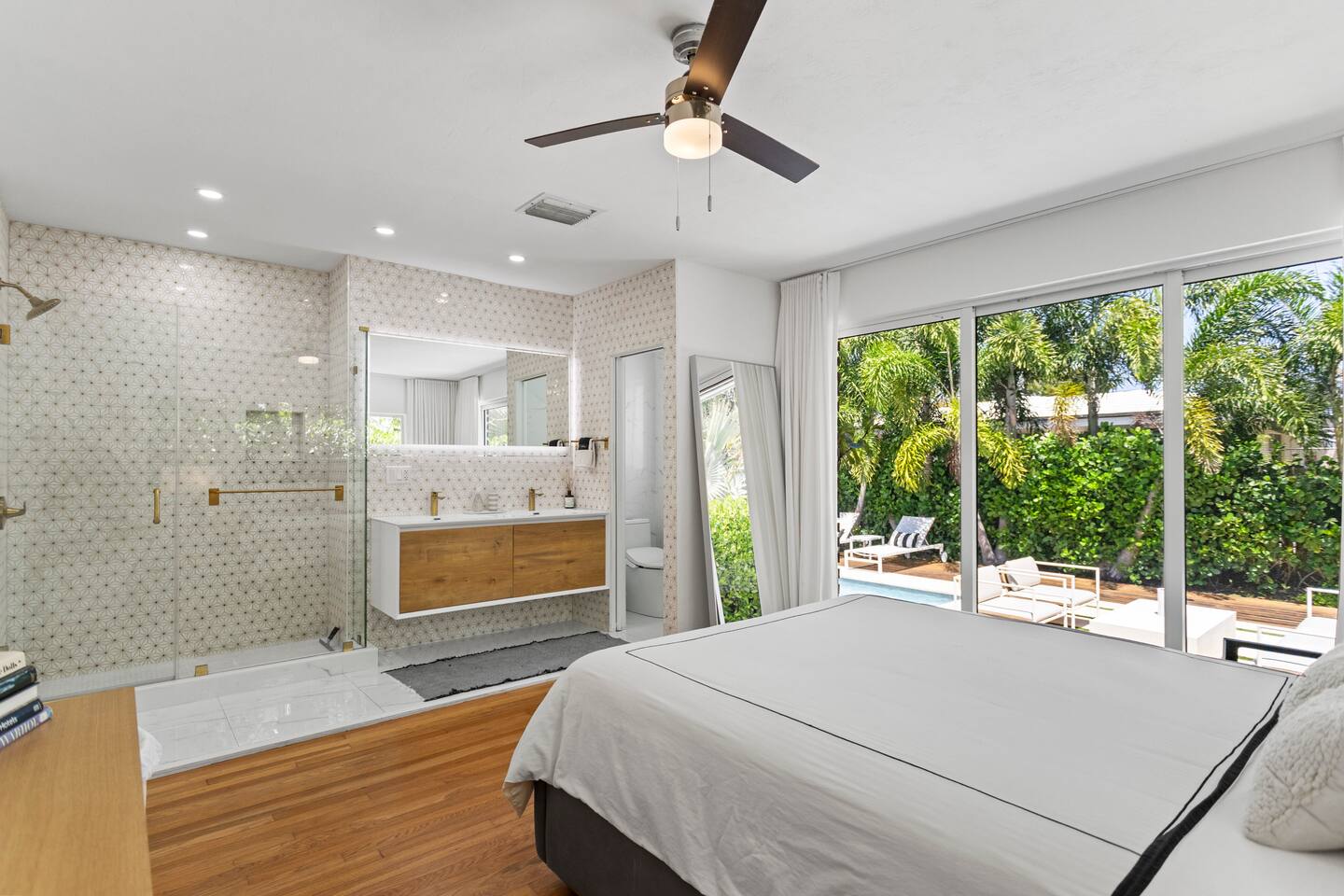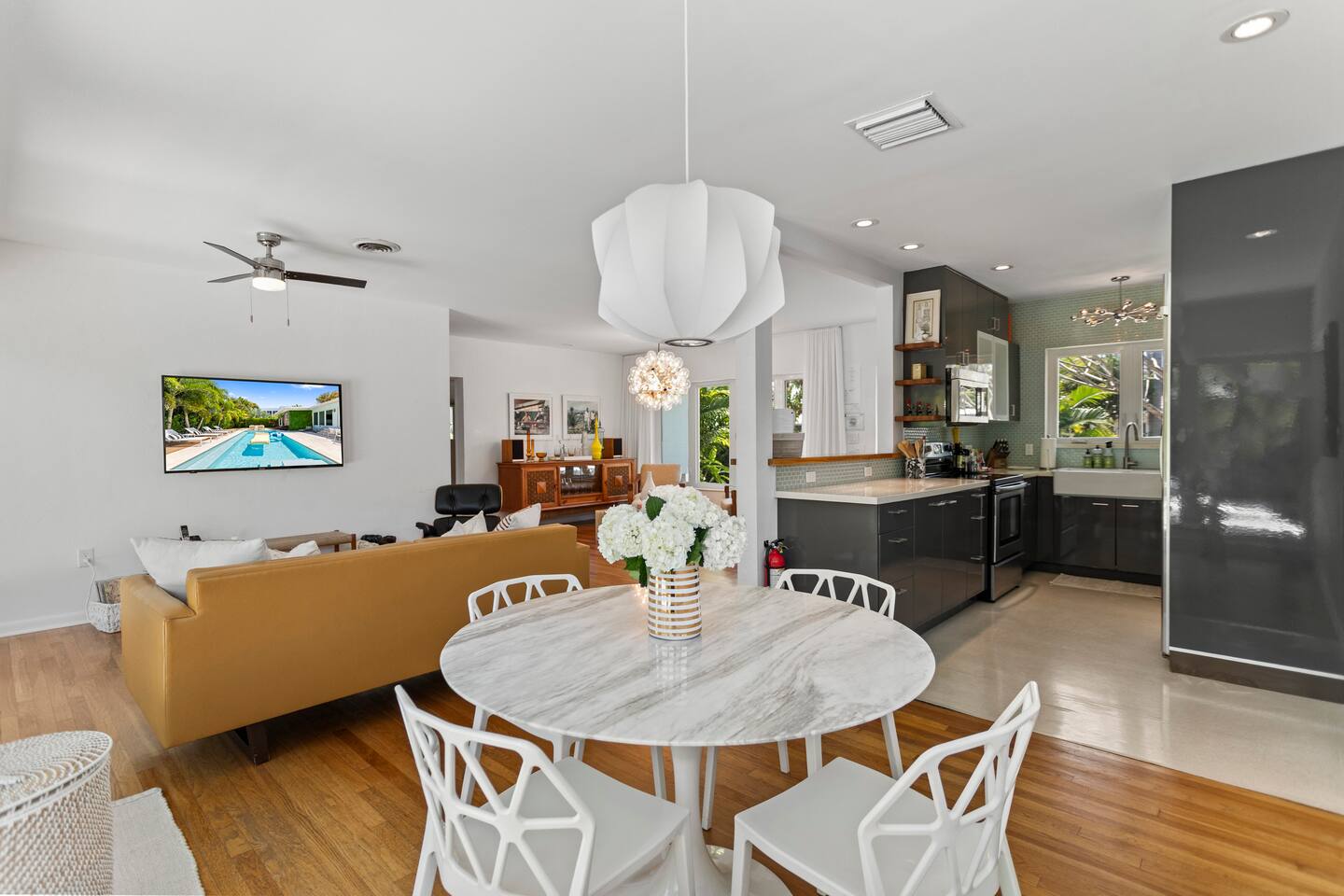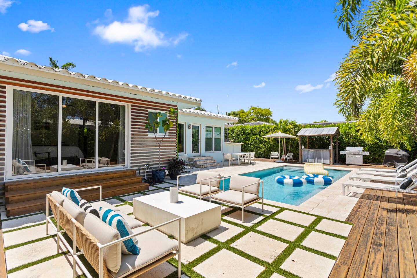 Enjoy a stylish experience at this centrally-located home in Wilton Manors on a lush tree lined street. Gorgeous and newly renovated midcentury gem with a wall of windows that connect the dining, living and master suite from the backyard. New landscaping, brand new heated pool, new deck, 2 outdoor grills, outdoor lounges, outdoor seating area, outdoor shower, and a tiki bar with a hot/cold sink. 2 bed/ 2 bath richly appointed featuring lux linens, TV, free Wi-Fi, and high end furnishings.