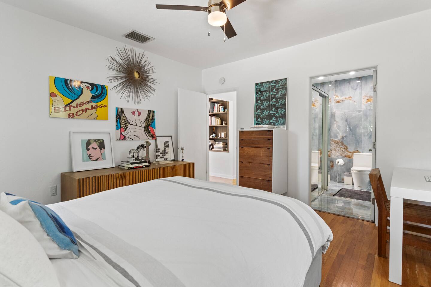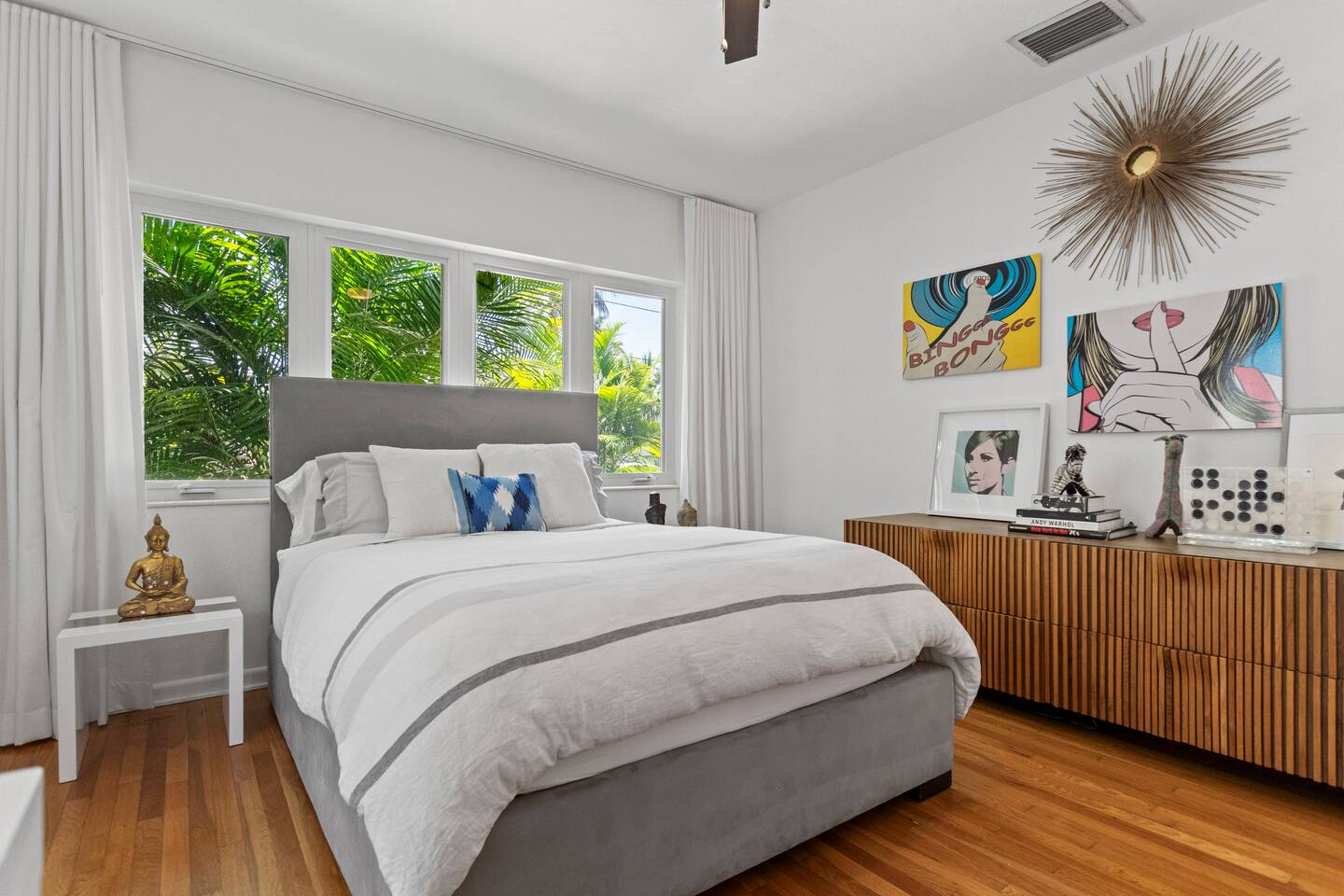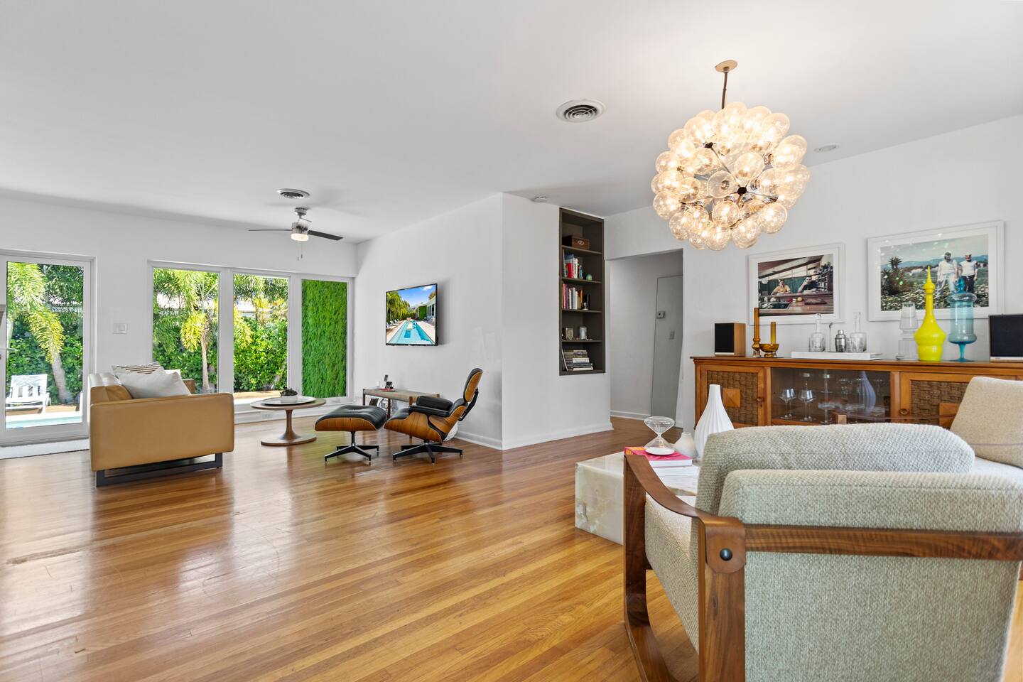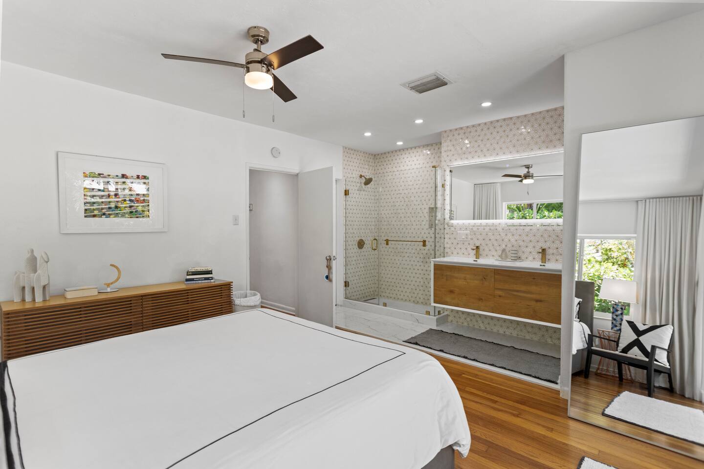 Enjoy a stylish experience at this centrally-located home in Wilton Manors on a lush tree lined street. Gorgeous and newly renovated midcentury gem with a wall of windows that connect the dining, living and master suite from the backyard. New landscaping, brand new heated pool, new deck, 2 outdoor grills, outdoor lounges, outdoor seating area, outdoor shower, and a tiki bar with a hot/cold sink. 2 bed/ 2 bath richly appointed featuring lux linens, TV, free Wi-Fi, and high end furnishings.