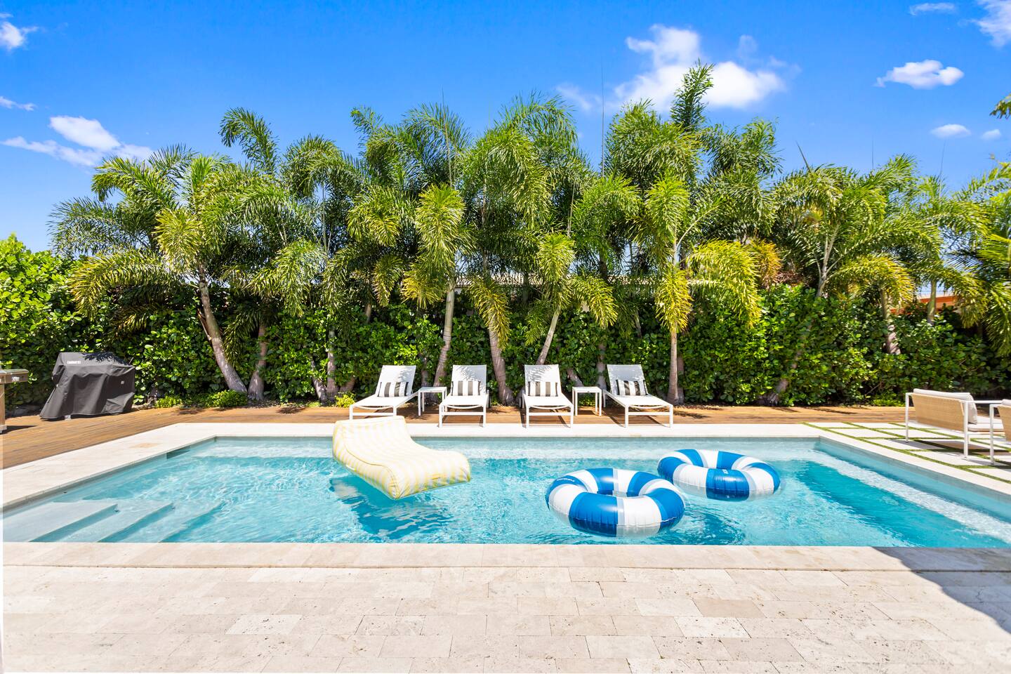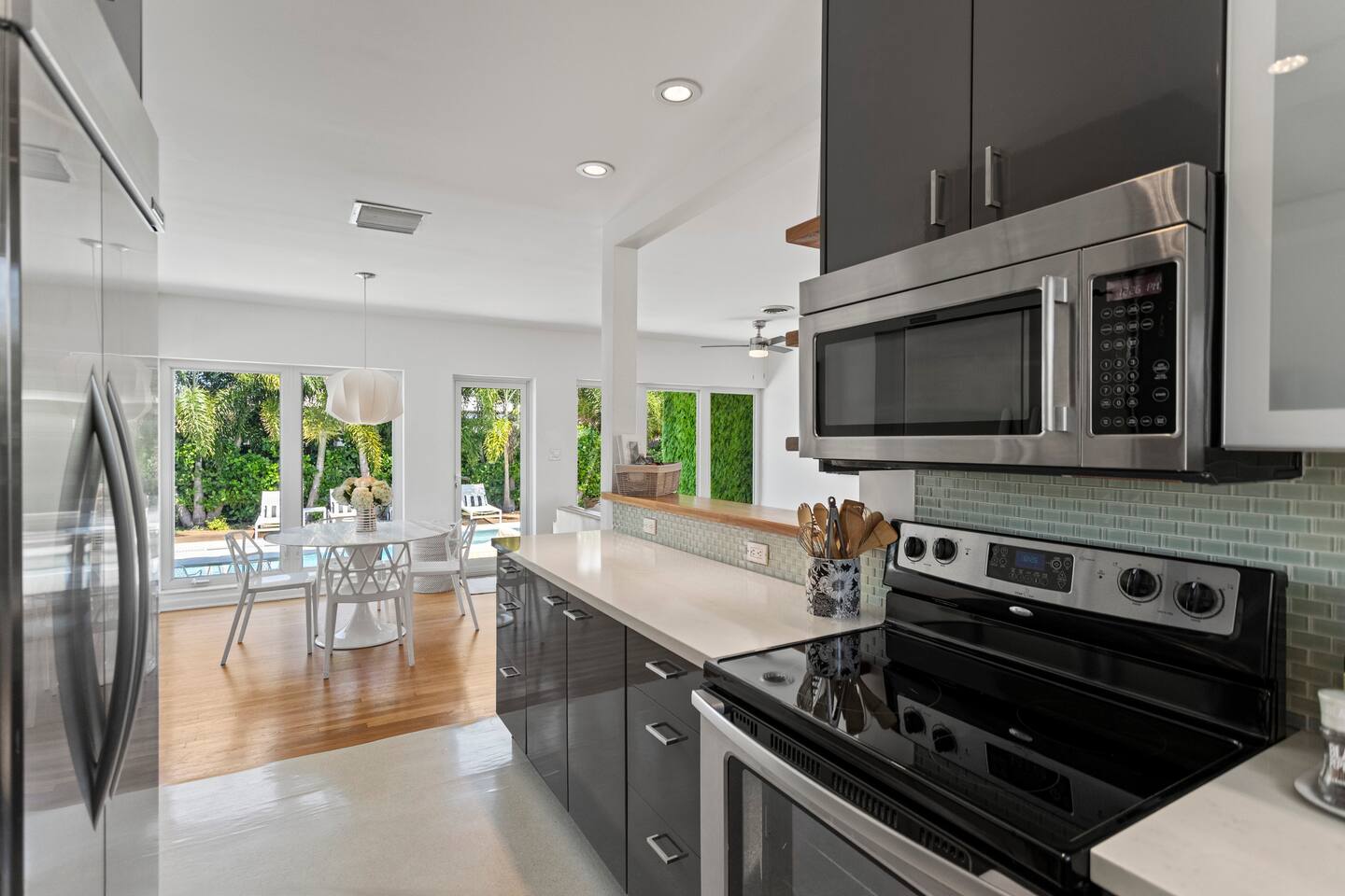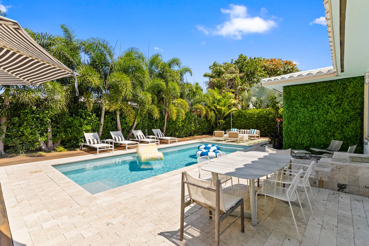 A stylish and chic design decor mixed with comfortable amenities will ensure you have a memorable stay. ✔ New Heated Private Pool ✔ Fully Fenced in Yard ✔ Pet Friendly ✔ Free High Speed Wi-Fi ✔ Smart TV ✔ Full Sized Washer/Dryer ✔ Minutes from the Beach ✔ Fully-equipped Kitchen ✔ Minutes From the “Drive” in Wilton Manors ✔ Right Off Federal Highway With Plenty of Shopping and Dining Options ✔ Quiet Tree Lined Street ✔ Outdoor Grill ✔ Security Camera Outside Next to Front Door ✔ High-end Furniture ✔ New Landscaping ✔ Ample Seating Inside and Outside ★ LIVING AREA ★ Modern interior design w/ an open concept & stylish high-end décor ✔ Open Concept Kitchen/Living Area ✔ Smart TV ✔ Fully-equipped Kitchen ✔ Dining Area w/ Table ✔ Wall of windows separate the living space from the backyard/ pool ★MASTER BEDROOM ★ Retreat to the sleeping quarters to get all the rest needed to continue your amazing vacation. ✔ Comfortable Queen Size Bed ✔ En suite Bathroom with bidet ✔ Direct Access the Backyard/ Pool Area ✔ Walk-in closet with Hangers and Shelves ✔ Oversized Mirror ★ MASTER BATHROOM ★ Newly renovated boutique hotel style bathroom ✔ Spacious Shower ✔ Double Sink Vanity ✔ Towels ✔ Shampoo & Conditioner ✔ Private toilet/ bidet room ★SECOND BEDROOM ★ Chic second bedroom with direct access to 2nd bathroom and dedicated work space ✔ Queen Bed ✔ Attached Bathroom ✔ Nightstands w/ Dresser ★ SECOND BATHROOM ★ Newly renovated glamorous bathroom with walls of mirrors and oversized tiles ✔ Spacious Shower ✔ Single Sink Vanity ✔ Towels ✔ Shampoo & Conditioner ✔ Full-sized washer & dryer ✔ Laundry detergent ★ OUTDOOR AREAS ★ Bask in the sun in your private heated pool ✔ Plenty of seating ✔ Dining Area ✔ Grill w/ Utensils ✔ Outdoor Shower ✔ Heated pool ✔ Cabana ✔ Towels Other things to note: - ALL ADULT GUESTS MUST BE REGISTERED ON THE RESERVATION - THERE MUST BE AT LEAST ONE ADULT (21 YEARS OR OLDER) PER RESERVATION - NO SMOKING ANYWHERE ON THE PROPERTY – INSIDE AND OUTSIDE - NO LARGE GATHERINGS or PARTIES - It’s a quiet and peaceful neighborhood - FOR NON-OVERNIGHTS, city law only allows 9 people max!! - FOR OVER-NIGHTS, city law only allows 6 people max and all guests must be registered - The pool and landscaping are serviced weekly, and the workers let themselves in through the side gates -- NO WET WIPES or BABY WIPES are to be flused down the toilet. They must be disposed of with the regular trash. They will clog the toilets (even if they say flushable on the packaging). - There is a second story home located next to the property with clear site lines into the backyard/ pool area **There are security cameras outside in front of the property. Please be aware. FLORIDA INSECTS AND REPTILES- All our OPP On Point Properties have regular pest control and are professionally cleaned between each guest. Please NOTE the pests listed below are common in every home no matter what the precautions are taken. While visiting us here in tropical Florida, you may run across some of our native insects and reptiles. Below is a list and some facts. DO NOT BE ALARMED - you may run into some of our natural habitat's creatures. This is part of Florida living. Palmetto Bug aka Roach Very common in our climate and are primarily attracted to food, water, and shelter. They are especially drawn to crumbs, food scraps, and pet food. No matter how good our pest control, one or two can always sneak through. Do not leave any food particles out and closet drains when not in use. Sugar Ants They are a small dark ant attracted to sugary substances. They tend to be seasonal, often showing up during our hot and dry weather. They are typically seen in kitchens and areas with food. Be careful what you leave out on the counter or where you eat, they will be attracted. Mosquitoes We have a significant mosquito problem due to our warm and humid climate which allows mosquitoes to thrive year-round. Be very careful to keep your doors and windows shut. No-See-Ums If you have ever been bitten by a mysterious insect that seems invisible to the naked eye, chances are you have encountered Florida’s no-see-ums. These tiny pests are often out early morning and early evening, you never see them but you will feel their bite. Iguanas They are green, sometimes orange/brown and vary in size . They are fast moving, non-threatening reptiles that can swim. They will leave droppings. Any contact with or ingestion of iguana feces can lead to gastrointestinal issues and other health problems with your dog/pets. Be aware. Be careful. Always keep an eye out. Any easy way to clear off droppings is to hose them away into the yard. Cane Toads They are large brown frogs with dry warty skin. They secrete a milky poison that can be very harmful if ingested by your dog/pets. This can lead to gastrointestinal issues and other health problems with your dog/pets. Be aware. Be careful. Always keep an eye out.