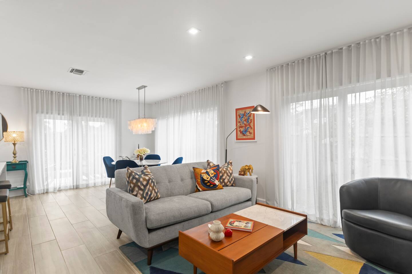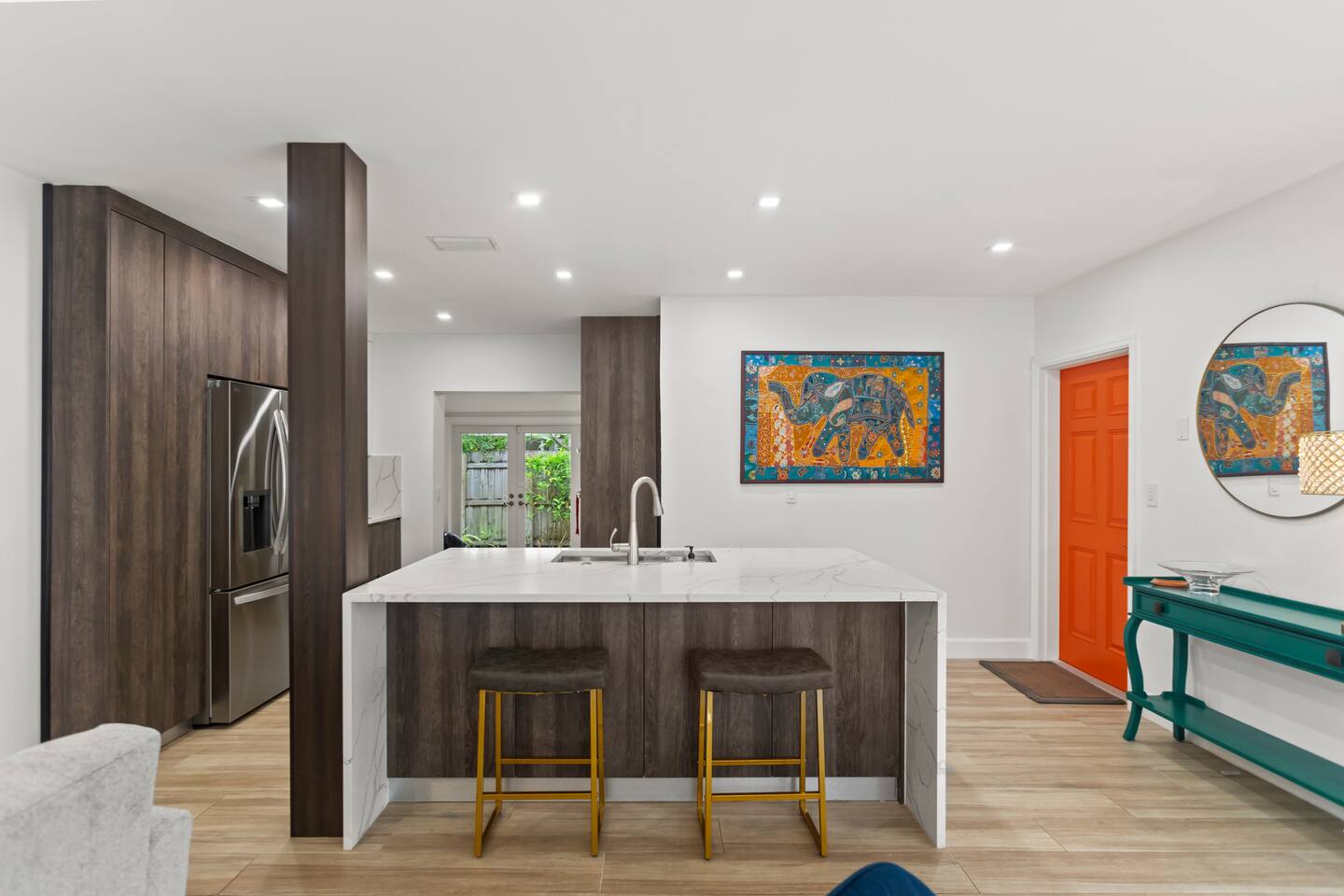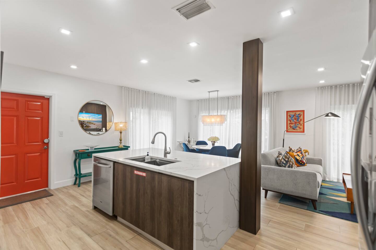 Welcome to Orange Door, a stylish and spacious mid-century home located in Poinsettia Heights, one of Fort Lauderdale’s most desirable neighborhoods, just minutes from the "Drive" in Wilton Manors and near the beaches of Fort Lauderdale. This stylish home is located on a quiet residential street, features 2 bedrooms, 1 large office, a game room, a laundry room, 2 full bathrooms, a fully equipped kitchen, fenced in yard, and a heated pool. Perfect for a short or long term getaway.