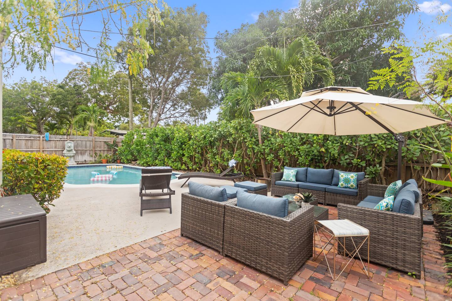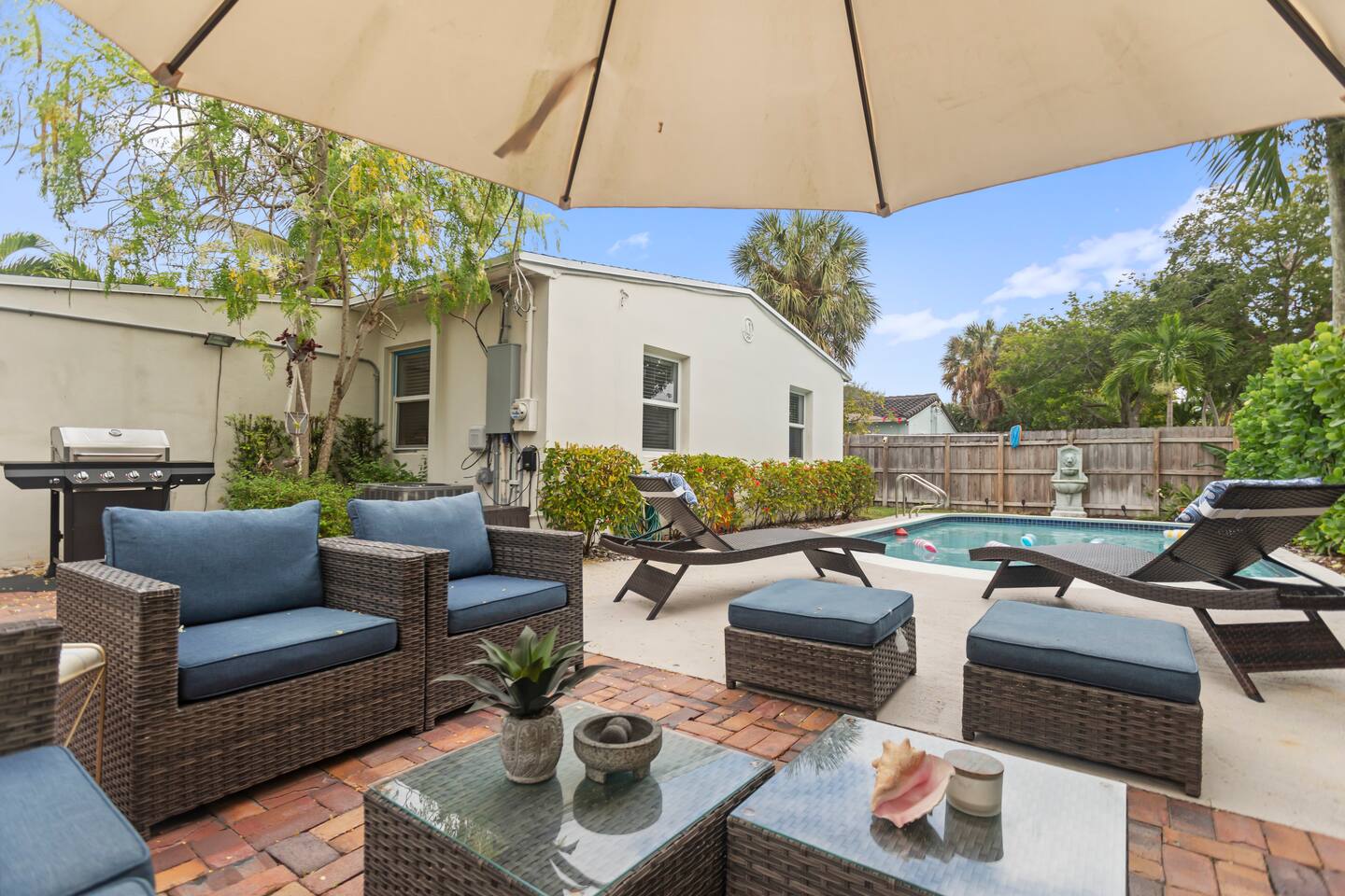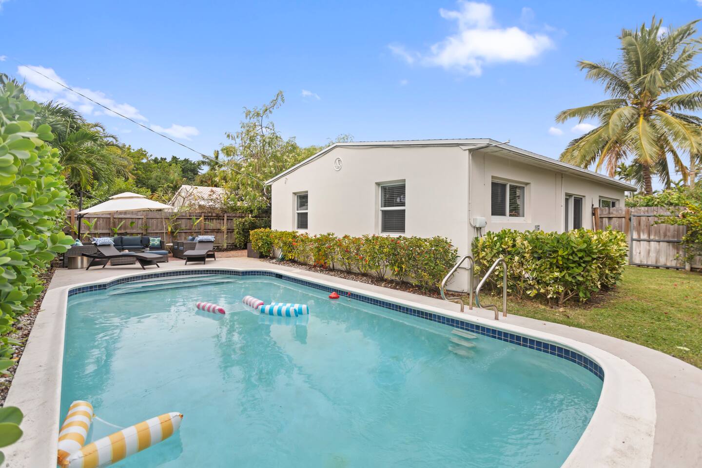 You will feel right at home in this thoughtfully designed space filled with all the conveniences you’ll need for an enjoyable and memorable stay. Highlights ✔ Private heated pool with pool floats ✔ Driveway parking for 2 Cars ✔ Minutes From the “Drive” in Wilton Manors ✔ Quiet residential street in upscale neighborhood ✔ Fully fenced in yard ✔ Pet Friendly ✔ Free High-Speed Wi-Fi (1GB) ✔ 2 smart TVs ✔ Private full-Sized washer & dryer with detergent ✔ Linens & towels ✔ Fully equipped kitchen ✔ Nespresso machine and tea kettle ✔ Brand new outdoor grill ✔ Security camera outside next to front door ✔ Ample seating inside and outside ✔ Board games & cards, and an arcade Pacman game ★ LIVING AREA ★ Modern interior design w/ an open concept & stylish décor ✔ Open concept kitchen/living area ✔ New sofa ✔ 62” Smart TV ✔ Fully equipped kitchen ✔ Dining area w/ table ★PRIMARY BEDROOM★ Retreat to the sleeping quarters to get all the rest needed to continue your amazing vacation. ✔ Comfortable queen size bed ✔ 400 tread count 100% cotton linens ✔ 52" smart tv ✔ 2 nightstands ✔ Large Closet With hangers and storage ✔ Work desk ★SECOND BEDROOM★ ✔ Comfortable Queen Size Bed ✔ 400 tread count 100% cotton linens ✔ 2 nightstands ✔ Large closet With hangers and storage ★BATHROOM #1★ ✔ Tub/shower combo ✔ Centered in house ✔ Bidet ✔ Lighted mirror ✔ New towels ✔ Shampoo, conditioner, body wash, hand soap ★BATHROOM #2★ ✔ Walk-in shower ✔ New towels ✔ Shampoo, conditioner, body wash, hand soap ★ OUTDOOR AREAS ★ Large full fenced in yard with Heated Pool ✔ Plenty of seating ✔ New grill w/ utensils ★ LARGE PRIVATE OFFICE WITH GLASS DOORS★ ✔ Desk and chair ✔ Away from living area ★HOT SPOTS NEARBY★ ✔ Beaches nearby ✔ Shops and restaurants along Federal Highway ✔ J. Alexanders ✔ The “Drive” in Wilton Manors – Bars, Restaurants, Entertainment ✔ Sprouts/ Wholefoods/ Trader Joes ✔ Las Olas Blvd ✔ Sawgrass Mills Mall ✔ The Shops at River Market Other things to note: - NO SMOKING ANYWHERE ON THE PROPERTY – INSIDE AND OUTSIDE - ALL ADULT GUESTS MUST BE REGISTERED ON THE RESERVATION - THERE MUST BE AT LEAST ONE ADULT (21 YEARS OR OLDER) PER RESERVATION - NO LARGE GATHERINGS or PARTIES - It’s a quiet and peaceful neighborhood - FOR NON-OVERNIGHTS, city law only allows 8 people max. - NO WET WIPES or BABY WIPES are to be flused down the toilet. They must be disposed of with the regular trash. They will clog the toilets (even if they say flushable on the packaging). - FOR OVER-NIGHTS, city law only allows 5 people max and all guests must be registered - The landscaping is serviced monthly, and the workers let themselves in through the side gates FLORIDA INSECTS AND REPTILES- All our OPP On Point Properties have regular pest control and are professionally cleaned between each guest. Please NOTE the pests listed below are common in every home no matter what the precautions are taken. While visiting us here in tropical Florida, you may run across some of our native insects and reptiles. Below is a list and some facts. DO NOT BE ALARMED - you may run into some of our natural habitat's creatures. This is part of Florida living. Palmetto Bug aka Roach Very common in our climate and are primarily attracted to food, water, and shelter. They are especially drawn to crumbs, food scraps, and pet food. No matter how good our pest control, one or two can always sneak through. Do not leave any food particles out and closet drains when not in use. Sugar Ants They are a small dark ant attracted to sugary substances. They tend to be seasonal, often showing up during our hot and dry weather. They are typically seen in kitchens and areas with food. Be careful what you leave out on the counter or where you eat, they will be attracted. Mosquitoes We have a significant mosquito problem due to our warm and humid climate which allows mosquitoes to thrive year-round. Be very careful to keep your doors and windows shut. No-See-Ums If you have ever been bitten by a mysterious insect that seems invisible to the naked eye, chances are you have encountered Florida’s no-see-ums. These tiny pests are often out early morning and early evening, you never see them but you will feel their bite. Iguanas They are green, sometimes orange/brown and vary in size . They are fast moving, non-threatening reptiles that can swim. They will leave droppings. Any contact with or ingestion of iguana feces can lead to gastrointestinal issues and other health problems with your dog/pets. Be aware. Be careful. Always keep an eye out. Any easy way to clear off droppings is to hose them away into the yard. Cane Toads They are large brown frogs with dry warty skin. They secrete a milky poison that can be very harmful if ingested by your dog/pets. This can lead to gastrointestinal issues and other health problems with your dog/pets. Be aware. Be careful. Always keep an eye out.